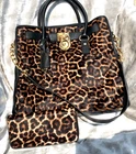 VERY RARE NWT KORS LARGE 'FULL SIZE' HAMILTON LEOPARD CHEETAH CALF HAIR LEATHER HANDBAG TOTE W/ MATCHING JET SET ZIP AROUND WALLET * COLLECTORS * NWT / MINT CONDITION * ONLY NWT LEOPARD HAMILTON HANDBAG LIKE IT ON EBAY * ONLY NWT LEOPARD JET SET ZIP AROUND WALLET LIKE IT ON EBAY * RETIRED / NO LONGER AVAILABLE * FULL SIZE HAMILTON LEOPARD / CHEETAH CALF HAIR W/ JET SET WALLET THIS STUNNING FULL SIZED KORS HAMILTON IN CHEETAH DYED CALF HAIR MEASURES APPROX. 13" HIGH, 14" WIDE, 6" DEEP. IT COMES WITH THE MATCHING JET SET ZIP AROUND WALLET...ALSO NWT AND UNUSED. THIS BAG IS GORGEOUS, SEXY AND EXTREMELY ELEGANT. NEVER USED, THE HANDBAG AND WALLET HAVE BEEN CAREFULLY STORED, SINCE I BOUGHT THEM, IN THE FACTORY ORIGINAL BAG, W/ DUST COVER, AND TISSUE STUFFING. EXCELLENT CONDITION. * I ACCEPT PAYPAL ONLY. * I DO NOT SHIP INTERNATIONALLY AT THIS TIME. * I SHIP USPS PRIORITY, INSURED. * SIGNATURE REQUIRED AT DELIVERY. 1) ALL ITEMS ARE SOLD 'AS IS' AND SALE IS FINAL. 2) REFUNDS ARE ONLY CONSIDERED IN THE EVENT THAT AN ITEM HAS BEEN GROSSLY MISREPRESENTED. 3) PLEASE DON'T HESITATE TO ASK ANY QUESTIONS YOU MIGHT HAVE, AND REVIEW THE PHOTOS FOR DESCRIPTION. I AM HAPPY TO SHARE MORE PHOTOS UPON REQUEST.