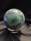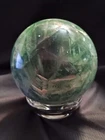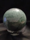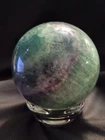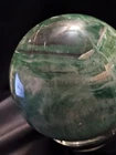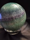 This beautiful sphere is a must-have for any crystal collector. Its vibrant dark green with purple fluorite crystal quartz material is sure to catch the eye. The sphere's unique shape and stunning color make it a standout piece in any collection. Featuring a rainbow green, purple, and clear fluorite crystal quartz sphere, this item is perfect for those interested in healing and spirituality. The sphere's natural beauty makes it a great addition to any crystal enthusiast's collection. Don't miss out on the opportunity to own this one-of-a-kind piece.