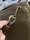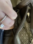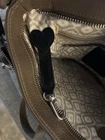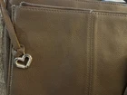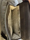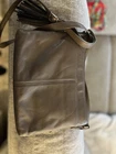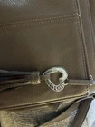 This large Brighton Barbados City Organizer bag is a stylish crossbody handbag designed for urban settings. Crafted from light brown pebbled leather with silver hardware, it features a zip and magnetic closure, adjustable crossbody strap in brown leather, and various inner and outer pockets for organization. The bag includes features like credit card slots, a key clip, and a limited edition design. With a designer theme and classic style, this upscale handbag is ideal for travel, casual outings, or business meetings, adding a touch of sophistication to any outfit. This bag is in very good preowned condition. There’s one slight small Pin mark as you can see pictured but hardly noticeable. Also, the charms are a little tarnished along with the strap adjuster. All pictured so you can see. The inside of the bag is in very good condition as well. If you have any questions please feel free to message me. Thanks for looking!!