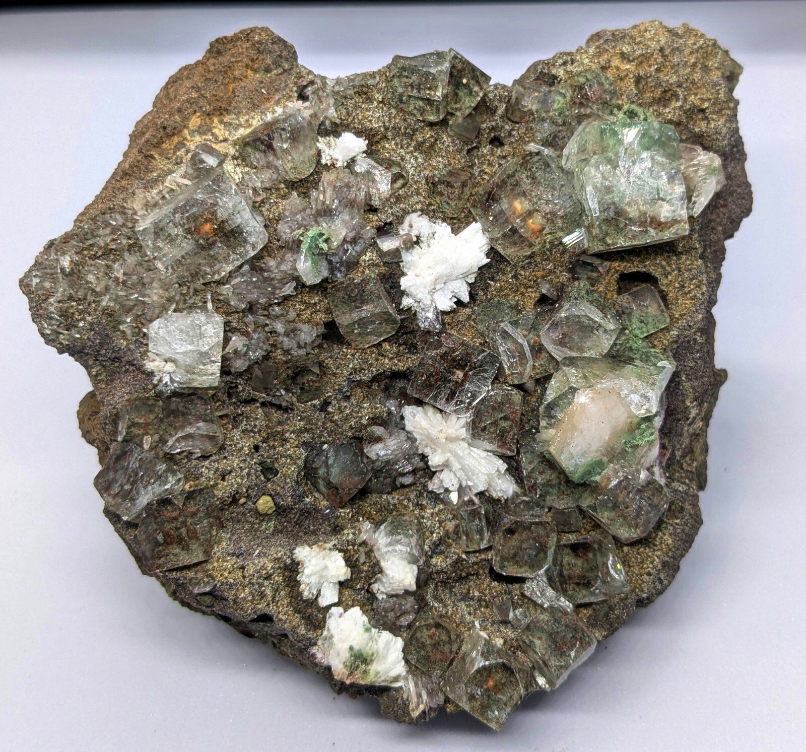GREEN APOPHYLLITE CUBES FORMATION W/ STILBITE BOWS ON MATRIX MINERALS+1