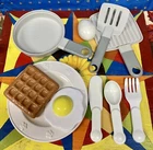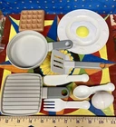 LITTLE TIKES PLAY FOOD BREAKFAST LOT A super cute addition to your little tikes play food kitchen! ***PLATE is Mattel 2002 & has discoloration due to age Please use your ZOOM and see all pictures for size & details From a smoke free pet free environment