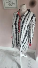 LKNW Ali Miles flawless, long blouse black, white, coral, artsy, unique top 2X chest lying flat 28 arm inseam 14 shoulders 19 length down back 31.5 rayon nylon mixxed