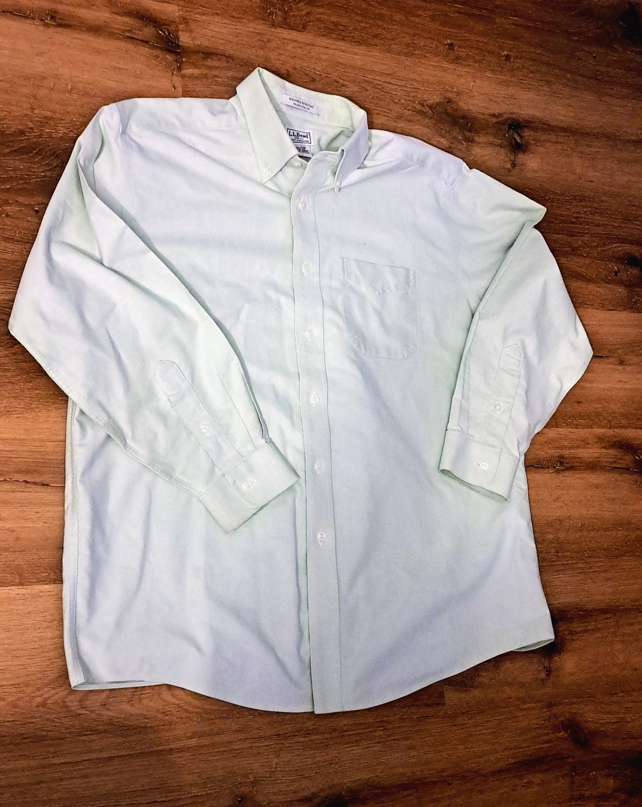 This LL Bean dress shirt in mint green is a classic and timeless piece for men's wardrobe. Made with 100% cotton fabric that is wrinkle resistant, this shirt features a striped pattern, long sleeves, button-down closure, and a collared neckline. With a regular fit and size 16.5 x 32, this shirt is perfect for a casual yet polished look. The blue accents add a touch of sophistication to this white shirt, making it a versatile and stylish addition for any occasion Sold As is No Returns