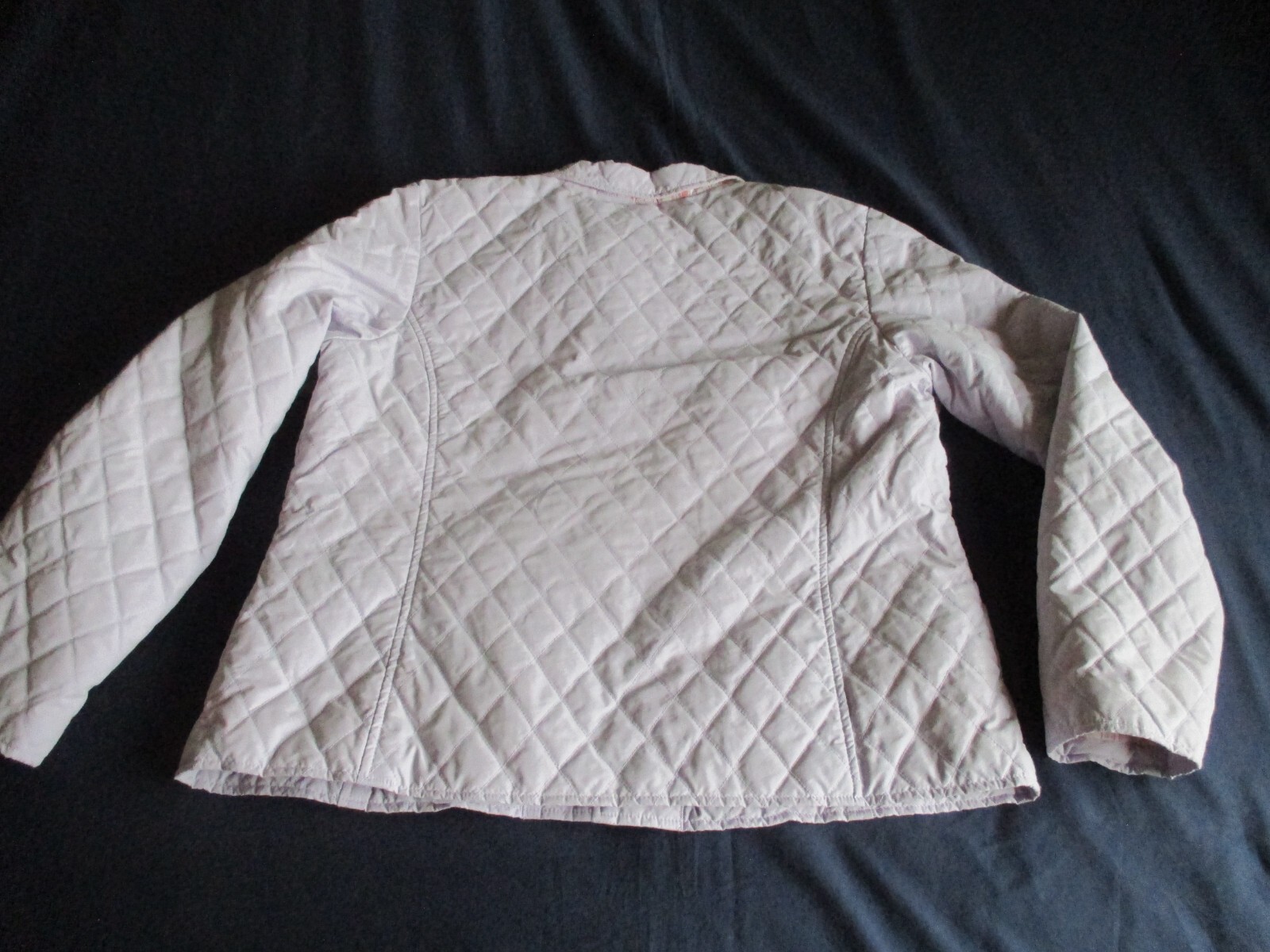 From L.L. Bean is a quilted jacket - very soft purple lavender in color with a striped lining. It buttons up the front and has 2 front slit pockets. It is a womens size Large Petite. Armpit to armpit measures 22" and length from top of shoulders to bottom is 24". I think it runs a tad small - or maybe just because it's a petite size (but maybe a medium petite? - sizing just challenging on ebay). This is a spring, fall or cool weather type jacket - not for cold, winter conditions. Preowned but in Excellent condition. This weighs just over 1#. Please also check out my other items ! I am happy to combine shipping.