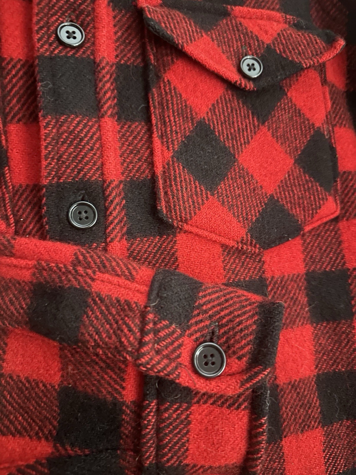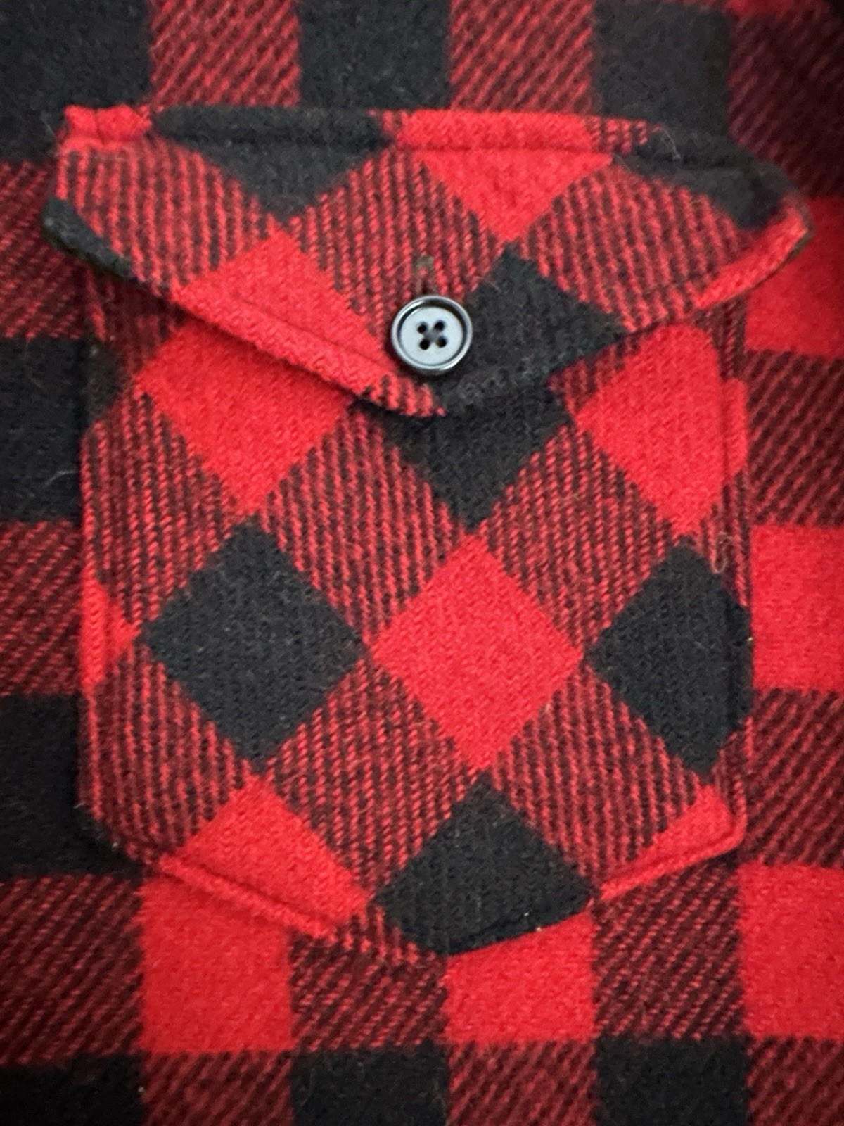 Classic L.L. Bean Maine Guide Shirt in iconic red and black buffalo plaid. A timeless outdoorsman staple made from warm, durable wool flannel. Features a traditional point collar, full button front, and two button-flap chest pockets. Heavyweight feel — perfect for layering, workwear, or casual winter wear. Tag size is missing, but measurements indicate this fits best as a men’s Small. Please compare measurements to your favorite shirt for best fit. Details: • Brand: L.L. Bean • Style: Maine Guide Shirt • Pattern: Buffalo Plaid • Color: Red / Black • Material: Wool flannel • Collar: Point collar • Pockets: Two button-flap chest pockets • Closure: Button front • Made for rugged outdoor wear Measurements (laid flat): • Chest (armpit to armpit): 20” • Shoulder to shoulder: 17.5” • Sleeve length (shoulder seam to end of cuff): ~23” • Length (back collar seam to hem): ~26” Good vintage condition with normal wear consistent with age. No major flaws noted.