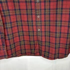 Wrap up in the warmth of this classic LL Bean Men’s Scotch Plaid Flannel Shirt, a timeless addition to your wardrobe. With its long sleeves, collared neckline, and heavy-duty cotton flannel fabric, it’s ideal for those brisk fall days, chilly winter evenings, and even cool spring mornings. The shirt features a vibrant red, navy, and yellow plaid pattern that adds a pop of color to any outfit, making it perfect for casual wear, travel, or even a smart-casual work environment. The shirt is designed for comfort and durability with a regular fit and is machine washable for easy care. It boasts a button-up closure with a stylish point collar and is accentuated with a chest pocket, ensuring your essentials are always within reach. This piece is a versatile garment that combines the rugged charm of an American workwear staple with the timeless elegance of a classic button-up shirt. Length - 30 inch/76.5 cm Chest - 44 inch/112 cm Sleeve - 25 inch/64 cm