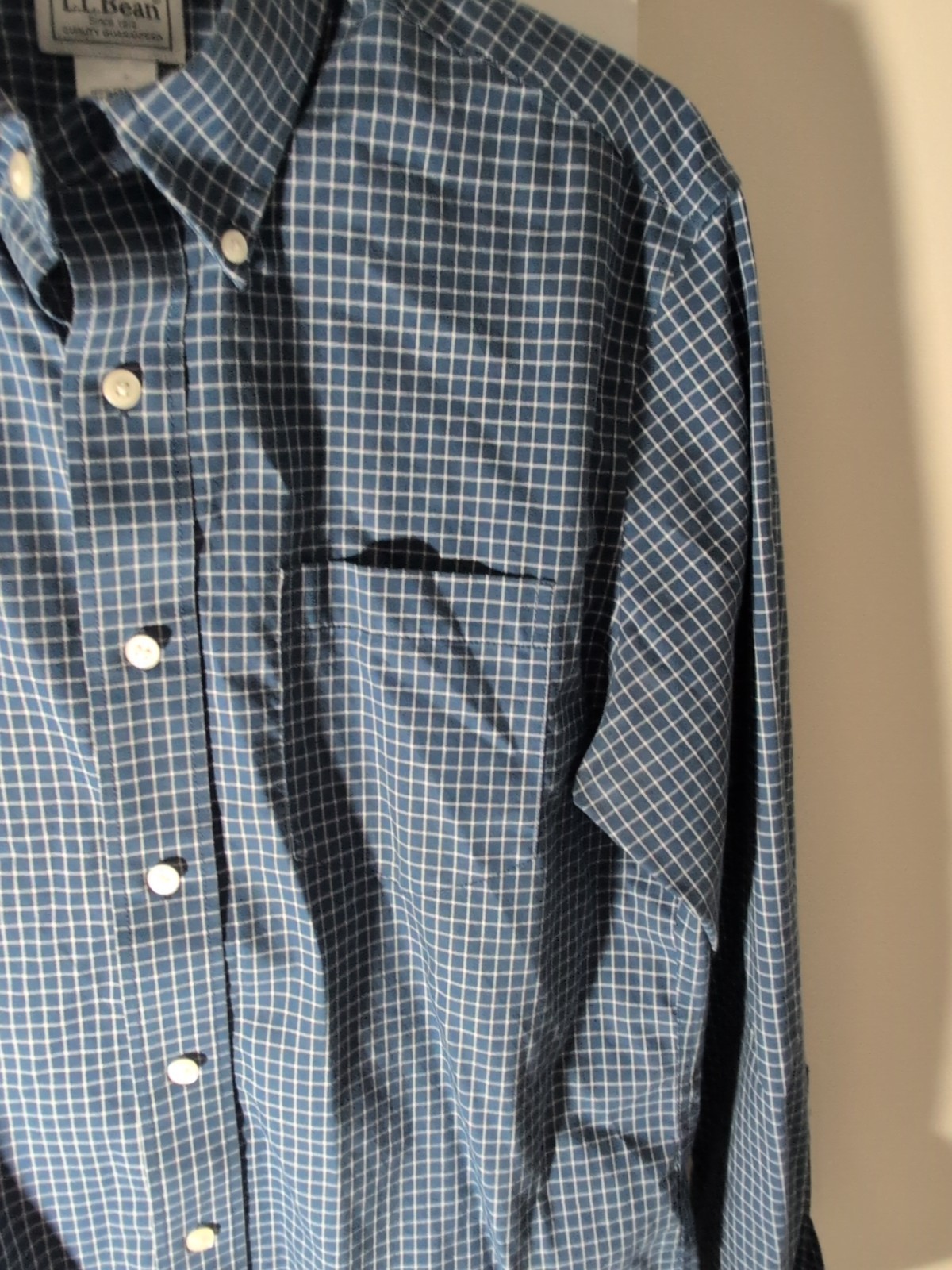 The LL Bean Men's Shirt in Blue Plaid is a classic and versatile addition to any man's wardrobe. Made of wrinkle-resistant cotton fabric, this button-down shirt features a collared neckline and long sleeves, making it suitable for casual, business, or travel occasions. The shirt is machine washable and has a regular fit, ensuring comfort and durability. With a chest size of 45 inches and a size M, this shirt is a timeless choice that can be styled for any season.