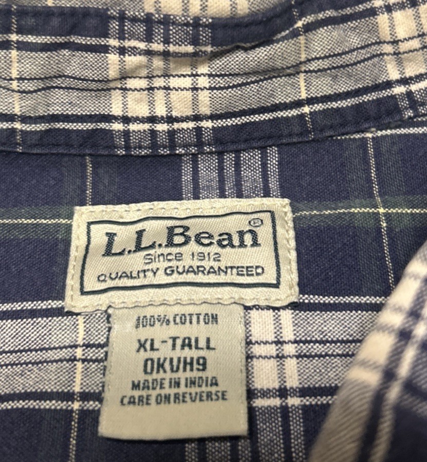 LL Bean Men’s Shirt XL Tall Plaid Flannel Button Up Long Sleeve Outdoors Cotton