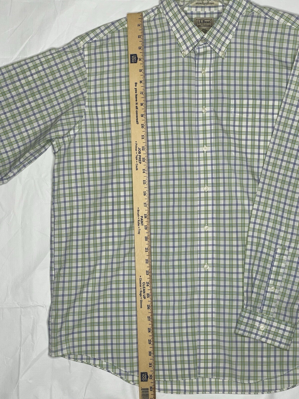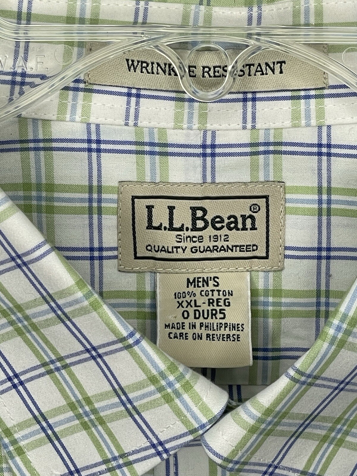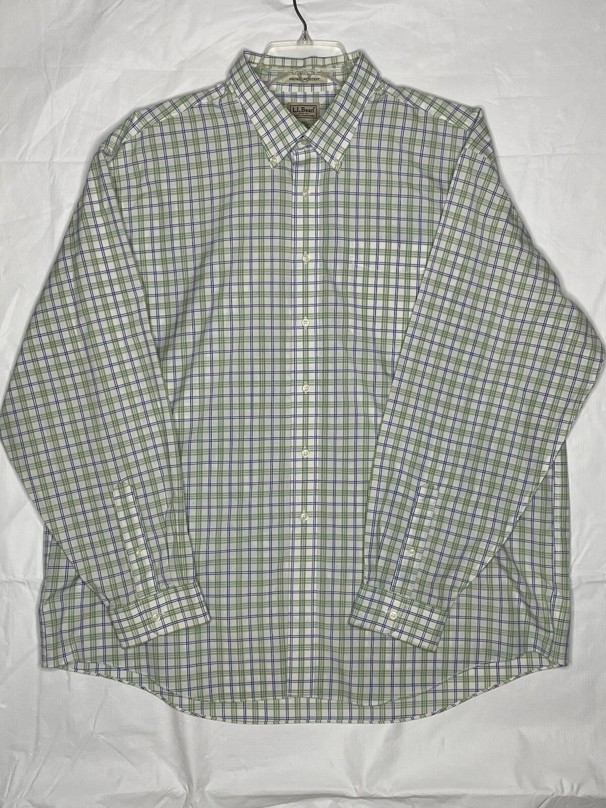 LL Bean Shirt Mens XXL Plaid Blue Green Wrinkle Resistant Travel Business Casual
