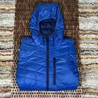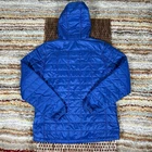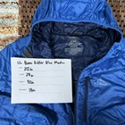 This is a blue LL Bean Ultralight Puffer Jacket in size Medium for men. It features a nylon outer shell, polyester insulation, a zip closure, and a hood. The jacket is designed for outdoor activities like skiing, hiking, and jogging, and offers windproof and breathable properties. It is lightweight and suitable for all seasons. The design includes quilted accents, zippered pockets, and the L.L. Bean logo, making it a stylish and functional choice for casual wear or travel.