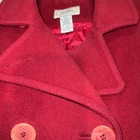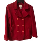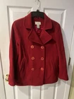 This is a vintage L.L. Bean women's coat in size 8 Petite, made from red lambswool with a polyester lining. The coat features a pea coat style and is designed for the winter season. Pit to pit 20” Length 28” Sleeve 23” ** please note the very top button under the collar is missing. See pics. The other button from the opposite side can be moved I suppose. Otherwise excellent condition