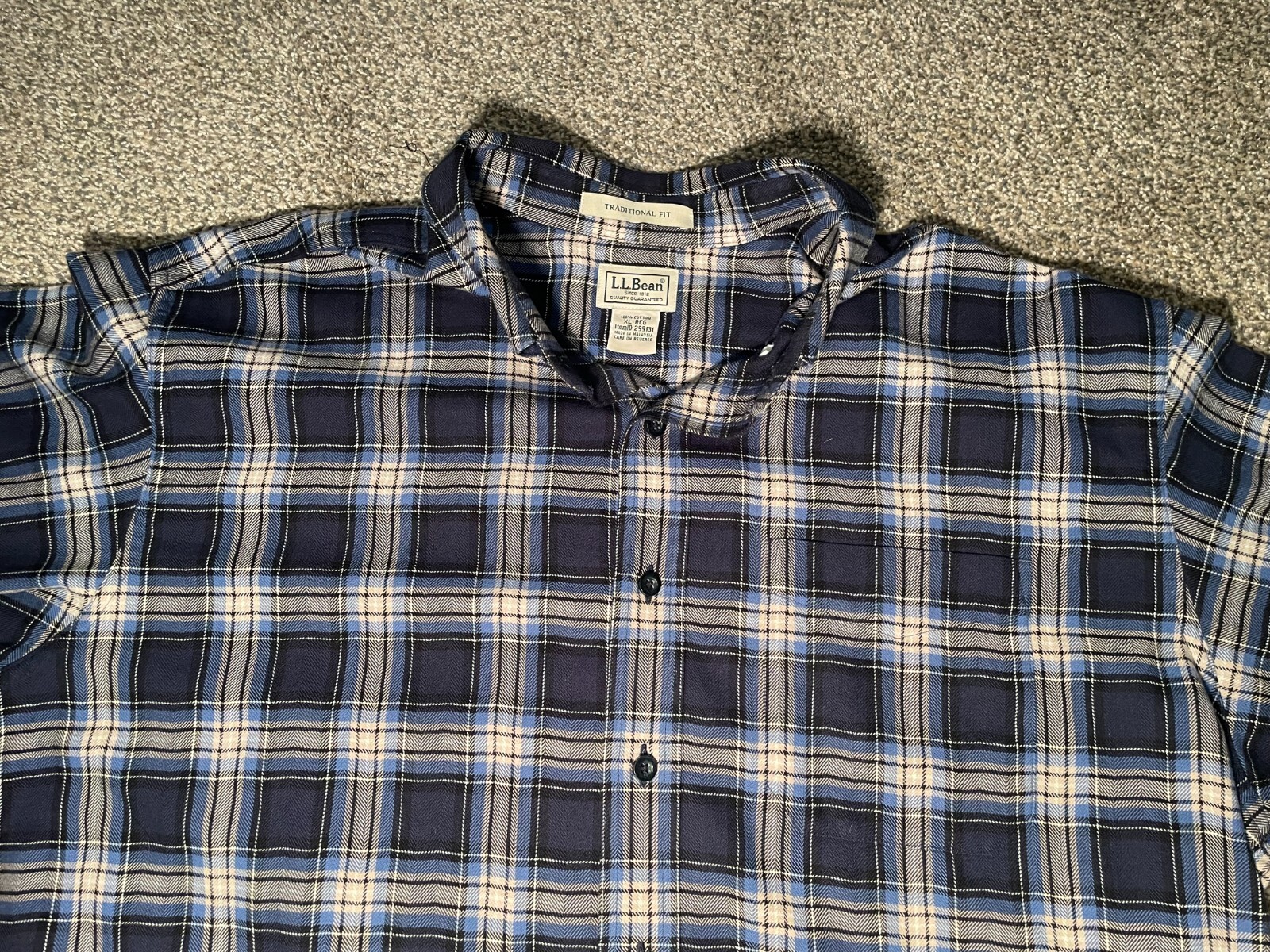 LL Bean men's collared shirt is perfect for any casual occasion. Its traditional fit, plaid pattern, and button-down collar make it a timeless classic. The shirt features long sleeves and is made from 100% cotton, ensuring comfort and durability. The button closure adds to its overall appeal. This XL shirt is designed for regular size men and comes in a beautiful blend of blues, tans, and whites. The fabric type is cotton, making it an excellent choice for everyday wear. The shirt is branded with L.L. Bean, known for their high-quality products and exceptional customer service. Ideal for any man looking to add a touch of class to his wardrobe. LL Bean Brand Men's Size XL Plaid Long Sleeve Item #299131 For Inventory - MI Shirt Box #1