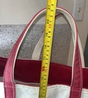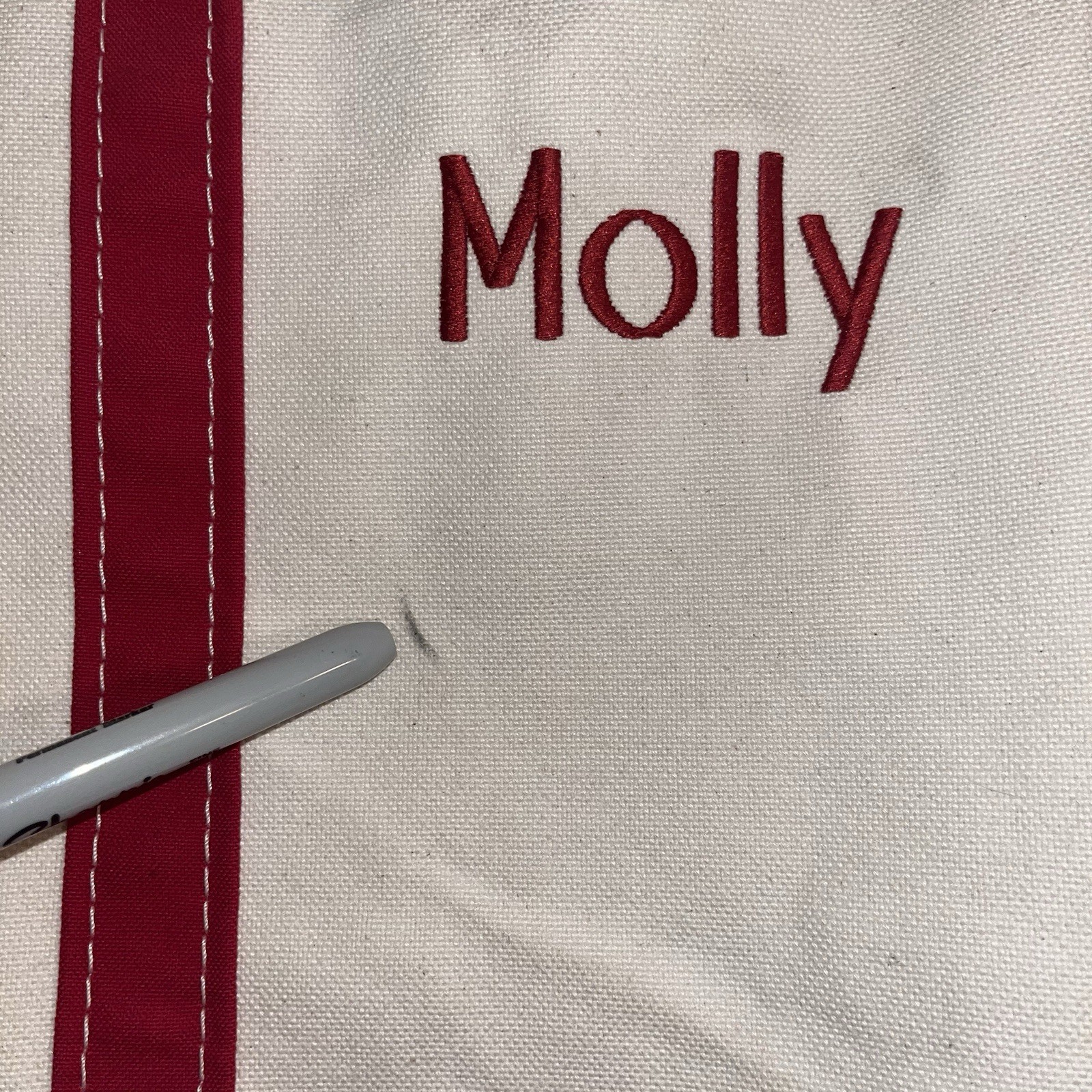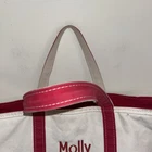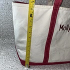LL Bean Boat & Tote Zip Top Bag Red Distressed Made In USA Personalized MOLLY Extra-Large Capacity: Approx. 3,400 cu. in., 56 L. Dimensions: 17"H x 19"W x 10"D. Handles: Regular: 10". Long: 14".