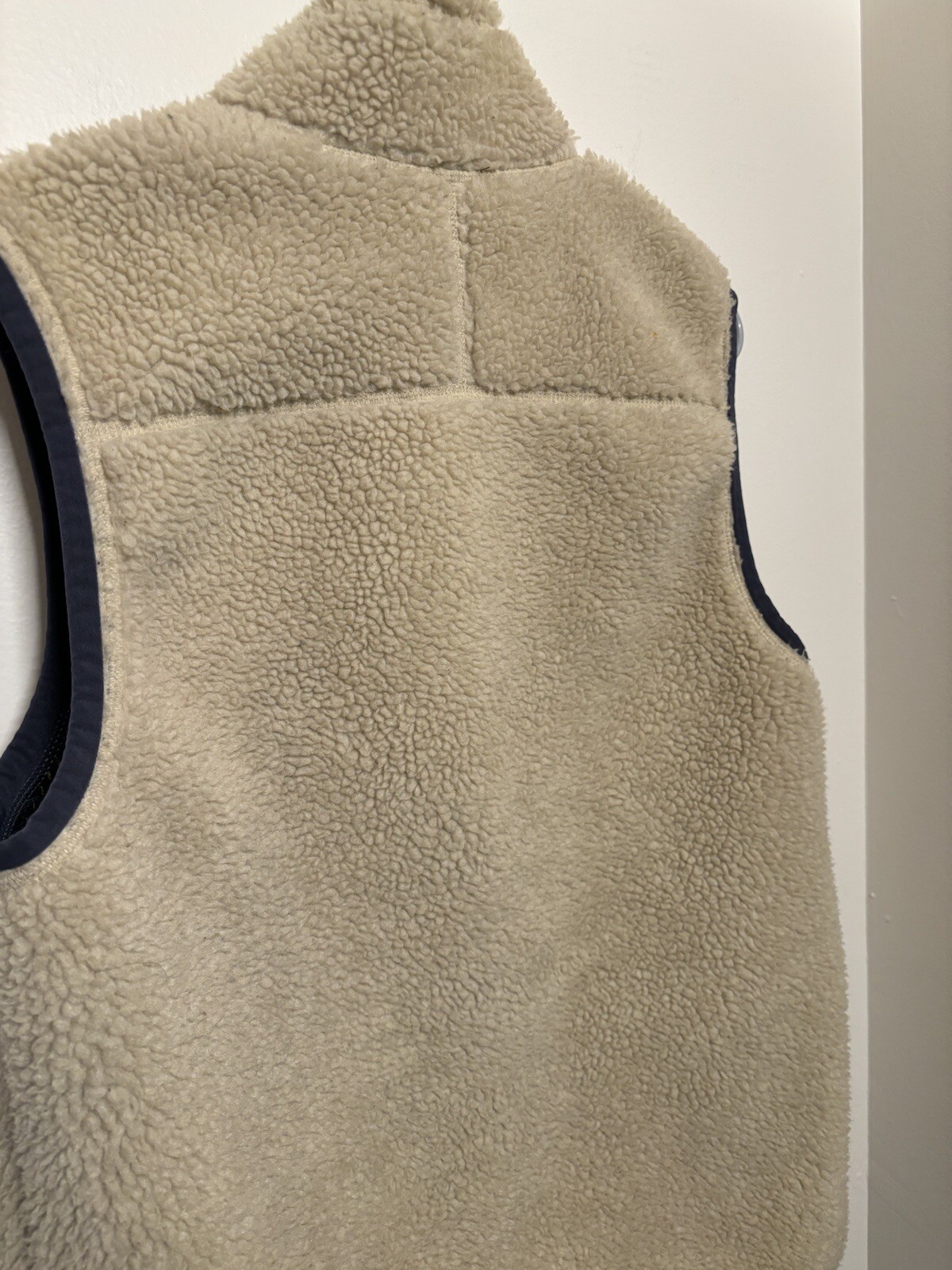 LL Bean Sherpa Vest Small Regular Deep Pile Fleece Oatmeal Cream Full Zip. Condition is Pre-owned. Shipped with USPS Ground Advantage.