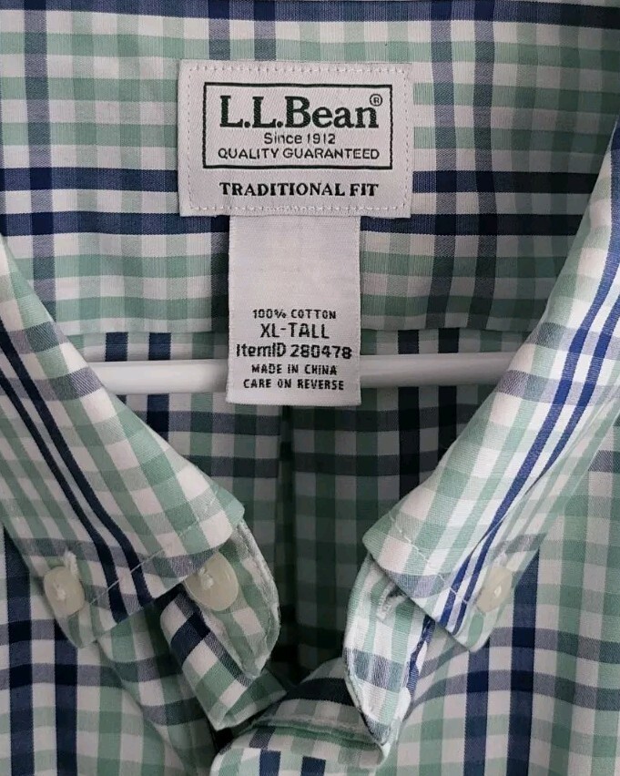 This is a men's L.L. Bean shirt in size XLT, featuring a multicolor check pattern with a button-down closure and a collared neckline. Made of cotton, the shirt has long sleeves and is designed in a regular fit for comfortable wear. It is suitable for various occasions, including travel, parties, casual outings, and workwear, offering convenience with its wrinkle-resistant feature. Easy to care for, this woven shirt is machine washable, making it a practical and versatile addition to any wardrobe.
