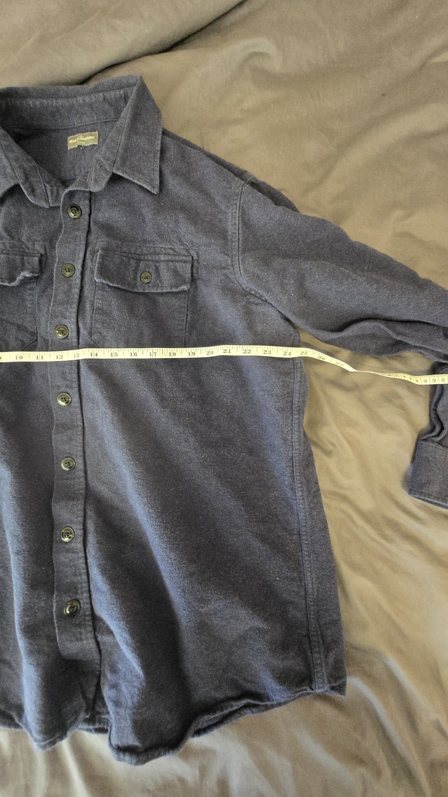 Easily the best flannel shirt I've ever owned. It's too big for me now, so I'm selling. The LL Bean Signature 1933 Archive Slim fit for men in size XXL features a classic navy blue flannel with chamois cloth, making it ideal for travel, casual outings, and workwear. Made of durable cotton flannel, this vintage shirt has a collared neckline, button closure, and a spread collar style. The heavyweight design and addition of pockets add to its functionality, making it a versatile and stylish addition to any wardrobe for winter, fall, or spring. With its timeless appeal and quality construction from a trusted brand like L.L. Bean, this shirt is a must-have for any man looking for a reliable and comfortable button-up.