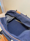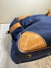 The LL Bean Vintage Canvas Travel Bag is a large shoulder bag made of canvas and leather materials. Featuring a vintage design in a green color, this bag is perfect for travel occasions. With a zip closure, adjustable strap, and inner dividers, it offers both style and functionality. This classic tote messenger bag from L.L. Bean is a timeless accessory for any man looking for a sturdy and stylish luggage option.