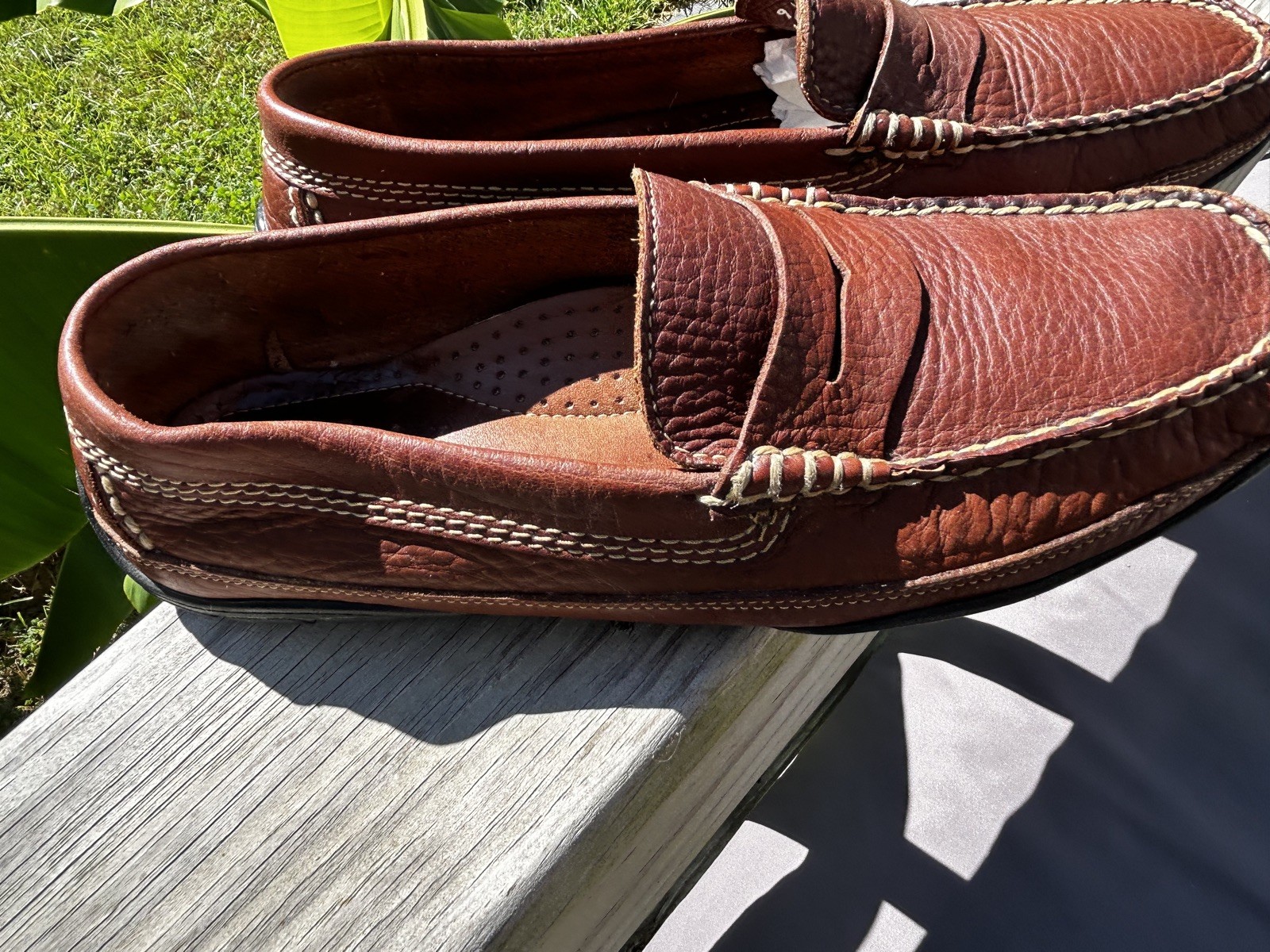 L.L. Bean Vintage Lug Kiltie Penny Loafers Mens 9 .5D Brown Leather Vibram Shoe