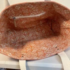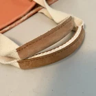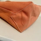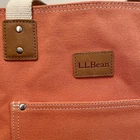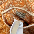 L.L. Bean Vintage Tote Bag. Orange with 2 ivory straps Leather handles Leather accents Open top Interior has a zipper side pocket Interior is a floral design Could be reversible Nice heavy canvas 100% cotton Front exterior slip pocket I think this is from the early 2000’s by label Excellent used condition Light corner wear See photos as part of the description Approximate measurements: Height (body): 11.5” Width 19” across top opening Depth (bottom): 6” Handle Drop 8.5”