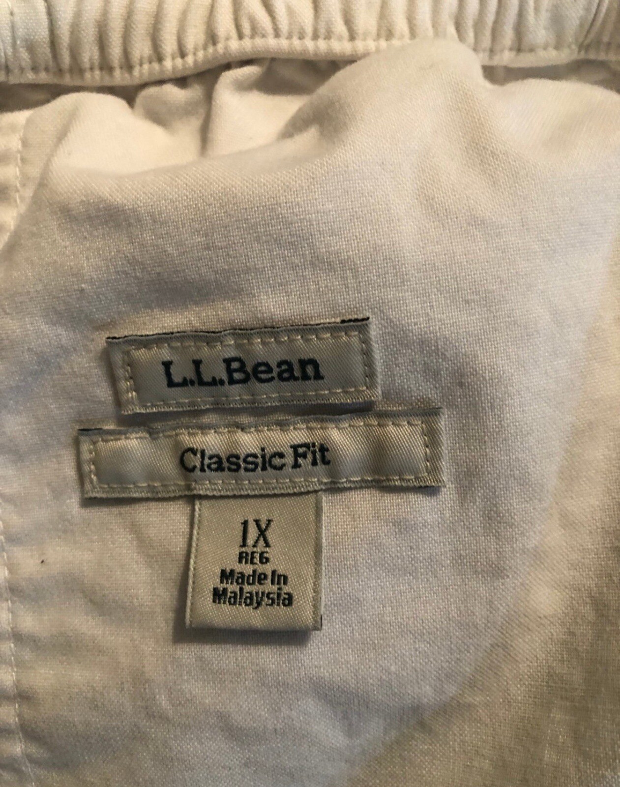 This is an L.L. Bean women's white capri crop pants in size 18, made of 100% linen. The pants feature a solid pattern with a zip closure and a flat front design. They are designed for casual or travel occasions and have adjustable waist for added comfort. The capri style adds a touch of sophistication, while the stretch material ensures a comfortable fit. Ideal for warm weather, these versatile pants can be paired with a variety of tops for a chic and effortless look. There is a small mark on them see the photo circled.