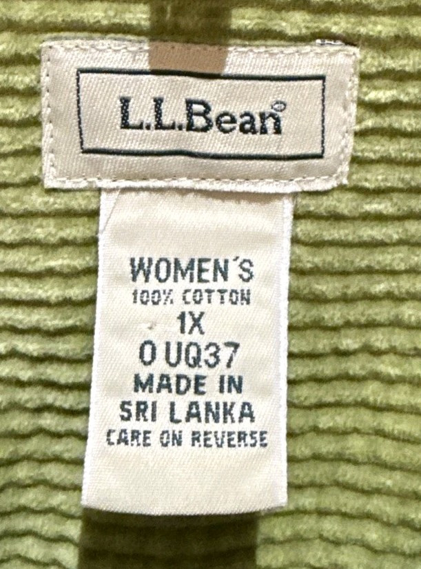 LL Bean Womens Green Heavy Corduroy Long Sleeve Button Up Top Shirt Size 1X. Pre-Owned, Ships USPS Ground Advantage. BN4