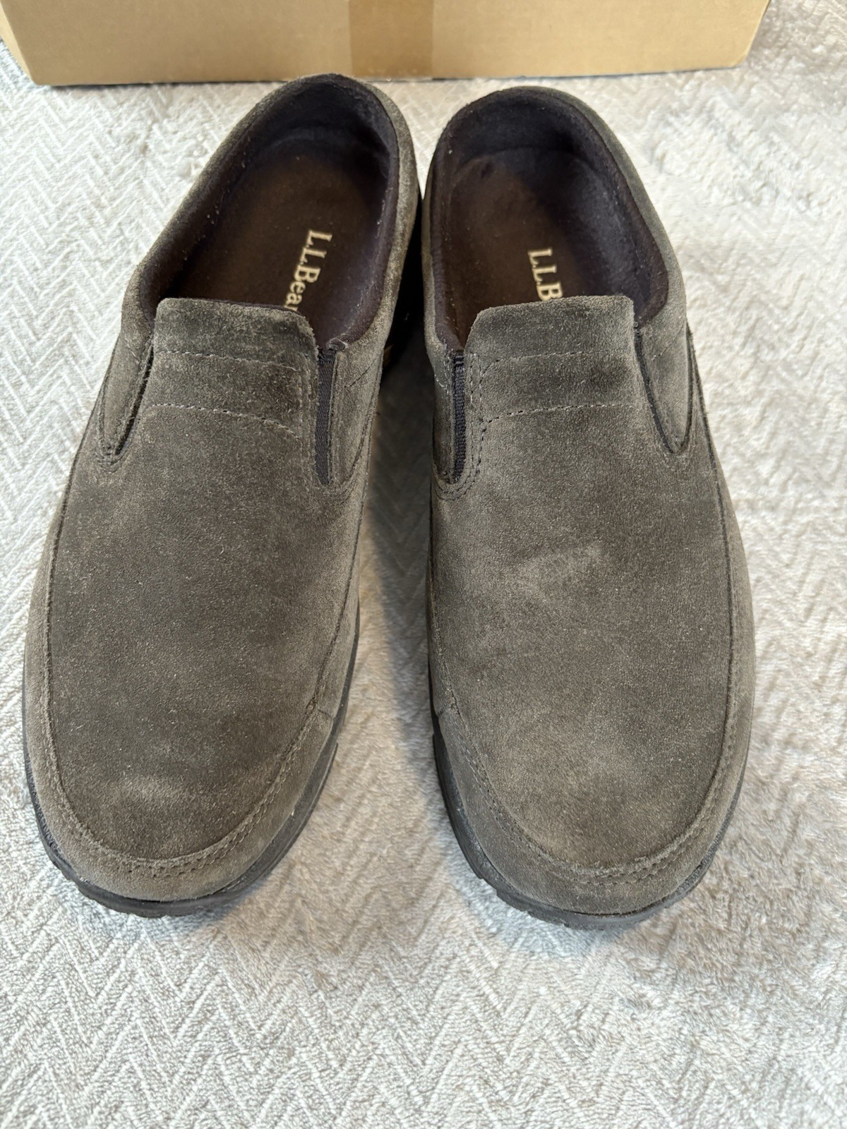These LL Bean Women's slip-on clog mule shoes in size 10 are perfect for casual wear. Made from soft suede in a stylish gray color, these shoes feature a supportive sole, low heel back, and non-slip tread for added comfort and security. The round toe and slip-on closure make them easy to wear, while the solid pattern and low top design make them a versatile addition to any wardrobe. Whether it's winter, summer, fall, or spring, these shoes are a practical and fashionable choice for any season. If there are any questions, please feel free to reach out.