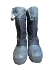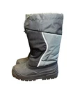Pre-owned in good condition L.L. Bean youth unisex winter snow boots Size 6 Black and gray Insulated Waterproof Missing original Velcro strap across front (purchased this way) Nylon and Rubber Slip on and Draw strip