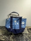 The L.L. Bean USA Made Snowflake Mini Small Boat and Tote Bag is a stylish and practical accessory for women who appreciate quality and American craftsmanship. Made in the United States with durable canvas material and comfortable cotton handles, this small tote bag features a classic boat style with a unique snowflake design, perfect for winter or everyday use. The bag offers ample storage space with dimensions of 10 inches in width, 6 inches in height, and 4.5 inches in depth, making it ideal for carrying essentials in a fashionable and patriotic way.