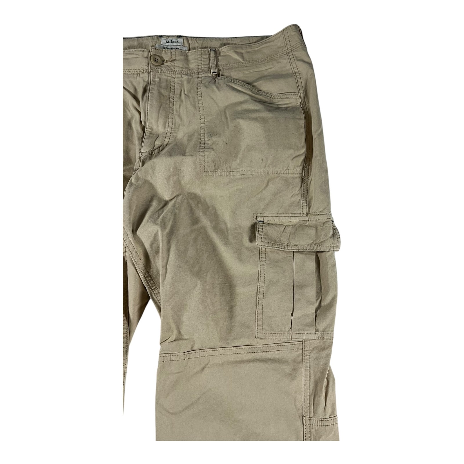 L.L.Bean Women's Favorite Fit Cargo Pants Comfortable and practical cargo pants from L.L.Bean, perfect for everyday wear or outdoor adventures. These pants feature a classic cargo style with multiple pockets for convenience. Key Features: Brand: L.L.Bean Style: Cargo Pants Color: Khaki Fit: Favorite Fit Closure: Button and zip fly Pockets: Multiple cargo and standard pockets Material: Durable fabric blend Waist - 38" Inseam - 29" Condition: These pants are in good used condition. They show signs of normal wear, including some minor fading and a few faint marks on the front pockets. All seams and closures are intact. Please review all photos for a detailed look at the condition.
