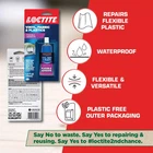 Product Details Product Type: Vinyl, Fabric & Plastic Repair Adhesive Brand: Loctite Color: Clear (Dries Transparent) Size: 1 fl oz Tube Formulation: Flexible liquid adhesive Set Time: Approximately 10 minutes Full Cure Time: Up to 24 hours Water Resistance: Waterproof once cured Application Areas: Vinyl, fabric, plastic, rubber, canvas, leather Use: Indoor and outdoor repairs Packaging: Eco-friendly outer packaging Detailed Description Loctite Vinyl, Fabric & Plastic Repair Flexible Adhesive is specially formulated to repair and mend flexible materials while maintaining durability and flexibility after curing. This clear liquid adhesive is ideal for fixing rips, tears, and small damage on vinyl seats, cushions, tarps, outdoor gear, and other flexible surfaces. The adhesive dries transparent, allowing for clean and nearly invisible repairs. Its flexible bond withstands bending, movement, and torsion, making it suitable for items that experience regular use. The easy-squeeze tube provides controlled application for detailed repair work without mess. Designed for convenience, this fast-setting adhesive begins to set in about 10 minutes and fully cures within 24 hours. Once cured, it forms a waterproof and resilient bond that holds up well in both indoor and outdoor environments. It can be used on a wide range of materials including fabric, canvas, rubber, leather, plastic, and vinyl. This versatile repair adhesive is commonly used for fixing rainwear, inflatable items, cushions, shoes, seating, tarps, and outdoor accessories. A dependable solution for everyday repairs, it delivers long-lasting flexibility and strong adhesion in a compact 1 fl oz tube.