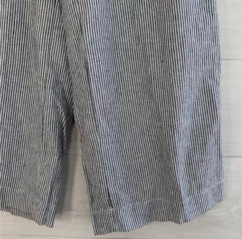 Elevate your wardrobe with these stylish LOFT Outlet Wide-Leg Crop Linen Blend Pants in Blue and White Stripes. Designed for women, these pants are perfect for any casual occasion. The pants are made of a blend of 55% Linen, 45% Rayon, and Linen, which makes them comfortable and breathable. The pants feature a wide-leg design with a cropped length, making them perfect for warmer weather. The blue and white striped pattern adds a touch of sophistication to the pants, making them versatile and easy to pair with any top. These pants are available in size small and are perfect for any fashion-forward woman who wants to add a touch of style to her wardrobe.