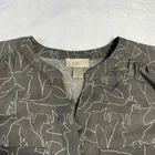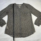 LOFT Split Neck Fox Print Semi Sheer Popover Blouse Size Medium Novelty Office CONDITION: Pre-Owned. Gently Used Condition. FLAWS/ALTERATIONS: There are a few faint stains on the back of the shirt. Please see the last pictures. COLOR: Grey/White SIZE: Women’s Size Medium DETAILS: Popover Long sleeve Roll tab sleeve Semi sheer Fox sketch novelty print Woven, no stretch Lightweight Double chest pocket MEASUREMENTS: Chest: 20" Full Length: 27.5" **All measurements are approximate and are taken flat** MATERIAL: 100% Polyester Bundle 2 OR MORE items to save more! Reasonable offers are welcomed! TAGS: Casual Comfy Spring Summer Contemporary Maximalist Neutral Office Career Professional Workwear Preppy Multicolor