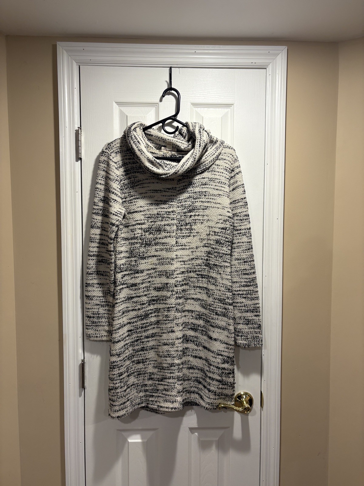 Cozy LOFT women’s sweater dress in size Medium. • Black & white marled knit pattern • Cowl neck, long sleeves • Tunic / above-knee length (varies by height) • Soft and comfortable, perfect with leggings or boots • Pre-owned, excellent condition ✨ Great for fall and winter wear!