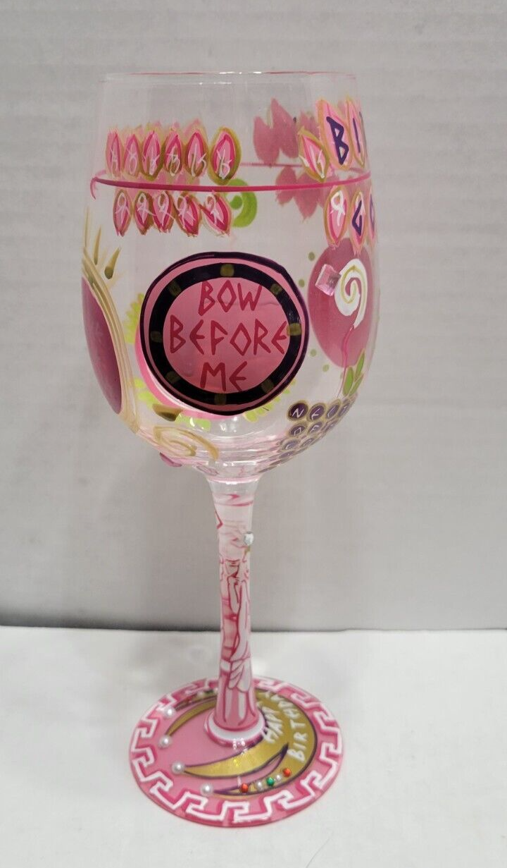 Lolita Birthday Goddess wine glass. Has drink recipe on the bottom. Great Birthday gift for the Goddess in your life!See photos.