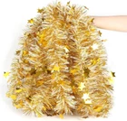 LOMIMOS 32.8 Ft Christmas Tinsel Garland, White Gold Glittering Product Details Brand: LOMIMOS Color: Gold Material: Polyvinyl Chloride (PVC) Item Length: 32.8 Feet Shape: Star Size information:The size of each tinsel garland is 10 meters / 32.8 feet, 9 cm wide / 3.54 inches, enough for you to use, due to manual measurement, please allow minute size errors. Material:The artificial garlands are made of high-quality PVC and metal wires, made it durable, not easy to break or deform, lightweight and reusable. Easy to use: Easy to install, you can hang them on walls, doors, ceilings, tables, stairs, windows, branches, enough to eye-catching.With flexible inner line, you can also turn them into a variety of shapes to adapt to your holiday decoration concept. Composes with the festival theme:With Christmas as theme, the bright white,gold with star can not only illuminate your space, but also bring strong holiday atmosphere. Paired with ribbons,Christmas light and other ornament for decorating your home. Widely applicable: These garlands are ideal for creating Christmas atmosphere, perfect for wreath making,gift wrapping,craft decorating and table setting,which can serve as indoor or outdoor decorations, such as party and other celebrations, suitable for restaurants, clubs, shops, schools,garden,is also suitable as photographic props.