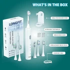 LONG FIT Electric Toothbrush for Adult Ultrasonic, Basic 90 Days Standby 37000VPM Clean Massage Sensitive Modes with 5 Replacement Toothbrush Heads Product Details Color: White I Brand: LONG FIT MPN: V3 UPC: 714394975201 EAN: 0714394975201 Brand: LONG FIT Age Range (Description): Adults, teens, elders Special Feature: Brushing Timer Power Source: Battery Powered Item Firmness Description: Soft Package Dimensions : 7.68 x 4.09 x 1.61 inches; 9.14 ounces Item model number : V3 Date First Available : December 29, 2021 Manufacturer : Longfit Best Sellers Rank: #642,363 in Health & Household (See Top 100 in Health & Household) #215 in Ultrasonic Toothbrushes #215 in Ultrasonic Toothbrushes Customer Reviews: 4.1 4.1 out of 5 stars (76) 3 INTENSITY FOR COMFORTABLE BRUSHING EXPERIENCE: Soft Mode is recommended to new users for ultrasonic toothbrushes or sensitive teeth and gums. Clean Mode is ideal for daily oral care. Massage Mode helps for caring gums. LASTS 90 DAYS WITH 5 HOURS CHARGING: Built-in 2000mAh battery lasts up to 90 days after charging. IPX7 waterproof e-toothbrush body and rechargeable. ULTRASONIC IMPROVES ORAL HEALTH UP TO 100%: 37,000 VPM high-frequency vibration per minute, it drives fluid deep between your teeth, creating exceptional clean for oral sanitary. PREMIUM DUPONT BRISTLE: 30% more DuPONT bristles, wave-shaped toothrbush can effectively improve breath odor and reducing oral problems. WHAT YOU GET: 1x ultra sonic electric toothbrush, 5x tooth brush replacements, 1x charging cable, 1x wall-stick toothbrush stand holder, 1x user manual.