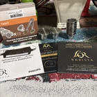 LOR BARISTA Used maybe a dozen times No box ; still under limited warranty Comes with all Paperwork Works great Comes with 9 small stainless steel reusable cups 2 Big cups with lip- these alone are 40$