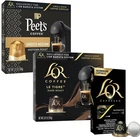L'OR Espresso and Coffee Pods Including Peet's - 30 Count (2 Sizes), Single Cup Aluminum Coffee Capsules Compatible with the L'OR Barista Coffee and Espresso Machine L’OR Ristretto II 6/24 L’OR LeTigre Dark Roast 9/24 Peet’s Smooth Medium Midtown Roast 9/24 Brand L'OR Item Form Capsule Flavor Peet Roast Level medium_roast Package Information Box About this item COFFEE CAPSULES EXCLUSIVELY COMPATIBLE with the L'OR BARISTA System. ESPRESSO CAPSULES compatible with the L'OR BARISTA System and Nespresso* Original machines. L'OR is not affiliated with the *Nespresso brand. INDULGE YOUR SENSES with coffee curated by L'OR Coffee Artists using the finest arabica and robusta beans, perfectly roasted and balanced to create a smooth, rich experience 30 RECYCLABLE ALUMINUM CAPSULES to lock in aroma and flavor, for a gold standard coffee experience A RAINFOREST ALLIANCE CERTIFIED COFFEE, an ethical involvement helping to improve social and environmental conditions within coffee bean plantations