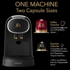 TASTE THE DIFFERENCE OF HIGH PRESSURE BREWING: Brew both coffee capsules and espresso capsules with the easy-to-use LOR BARISTA one-cup coffee maker; unlock BOLD FLAVOR, RICH AROMA, and VELVETY CREMA that standard drip coffee machines can't match WIDE CAPSULE SELECTION: Select any L'OR high-quality coffee and espresso to fit your mood or time of day; made in France in sustainable aluminum, RANGE OF DELICIOUS FLAVORS & BLENDS: light to dark roast, high to low intensity; decaf options CAFE-INSPIRED QUALITY: L'OR BARISTA single-serve brewer pours 6 SIZES OF COFFEE AND ESPRESSO to help make your favorite HOT OR ICED coffee, latte, cappuccino, iced coffee and more, for a French café experience right at home from sustainable sources CAPSULE COMPATIBILITY: The LOR BARISTA system is compatible with LOR single-serve coffee and espresso capsules; also compatible with Nespresso* Original coffee machine capsules. *Trademark of a third party, not affiliated with JACOBS DOUWE EGBERTS