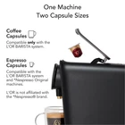 Up for sale is L'OR Barista System Coffee and Espresso Machine Combo by Philips. Color is Black Brand new, never used. Fast same day shipping. Brew both coffee capsules and espresso capsules with the easy-to-use LOR BARISTA one-cup coffee maker; unlock BOLD FLAVOR, RICH AROMA, and VELVETY CREMA that standard drip coffee machines can't match Select any L'OR high-quality coffee and espresso to fit your mood or time of day; made in France in sustainable aluminum L'OR BARISTA single-serve brewer pours 6 sizes of coffee and espresso to help make your favorite hot or iced coffee, latte, cappuccino, and more, for a French café experience right at home from sustainable sources Philips manufactured pod coffee maker automatically detects selected capsule (coffee or espresso) and adjusts brew volume accordingly L’OR aluminum coffee and espresso capsules are eligible for recycling through the L’OR Recycling Program. Capsule Compatibility: Brews L'OR single-serve coffee and espresso capsules, Peet's Coffee® single-serve capsules exclusively made for L'OR, and *Nespresso Original machine capsules. L'OR is not affiliated with the *Nespresso® brand. Fast 25 second heat up with large 40 oz water tank for fewer refills Just 11" tall x 7" wide x 16" deep WHAT'S INCLUDED L'OR BARISTA coffee & espresso system, removable drip tray, removable 40oz water reservoir