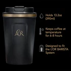 L'OR Travel Mug Black - 13.2 oz Stainless Steel Coffee Cup for Hot or Cold Beverages on the Go including Coffee, Espresso, Lattes, Cappuccinos - 1 Mug Product Details Color: Black Brand: L'OR MPN: 2201005 EAN: 8711000688670 UPC: Does not apply Brand: L'OR Color: Black Special Feature: Condensation Resistant Style: Modern Theme: Modern Brand: L'OR Color: Black Special Feature: Condensation Resistant Style: Modern Theme: Modern Recommended Uses For Product: Travel Occasion: Any Included Components: Lid Shape: Cylindrical Product Care Instructions: Hand Wash Only Reusability: Reusable Unit Count: 1.0 Count Product Dimensions: 3.75"W x 6.1"H Number of Items: 1 Manufacturer: L'OR Size: 13.2 Oz Item Weight: 8.1 ounces Country of Origin: USA Item model number: 2201005 Date First Available: October 10, 2024 Cup Holder Friendly: Elegant travel mug design fits comfortably in your hand and most car cup holders; enjoy your favorite hot or iced beverages on the go with leak-proof and spill-proof design. Keep Drinks Hot or Cold: High-quality, double-walled mug will help keep your coffee hotter or colder longer (keeps at temperature for 6-8 hours), prevents condensation, and is safe to touch (not hot to touch). Perfect Size: Travel mug has a 13.2oz (390ml) capacity; includes stainless steel mug with plastic lid. Compatibility: Designed to fit under the L'OR BARISTA system single-serve brewer; enjoy L'OR or Peet's Coffee capsules while on the move. Easy Clean: Hand wash recommended for optimal beverage enjoyment and mug longevity.