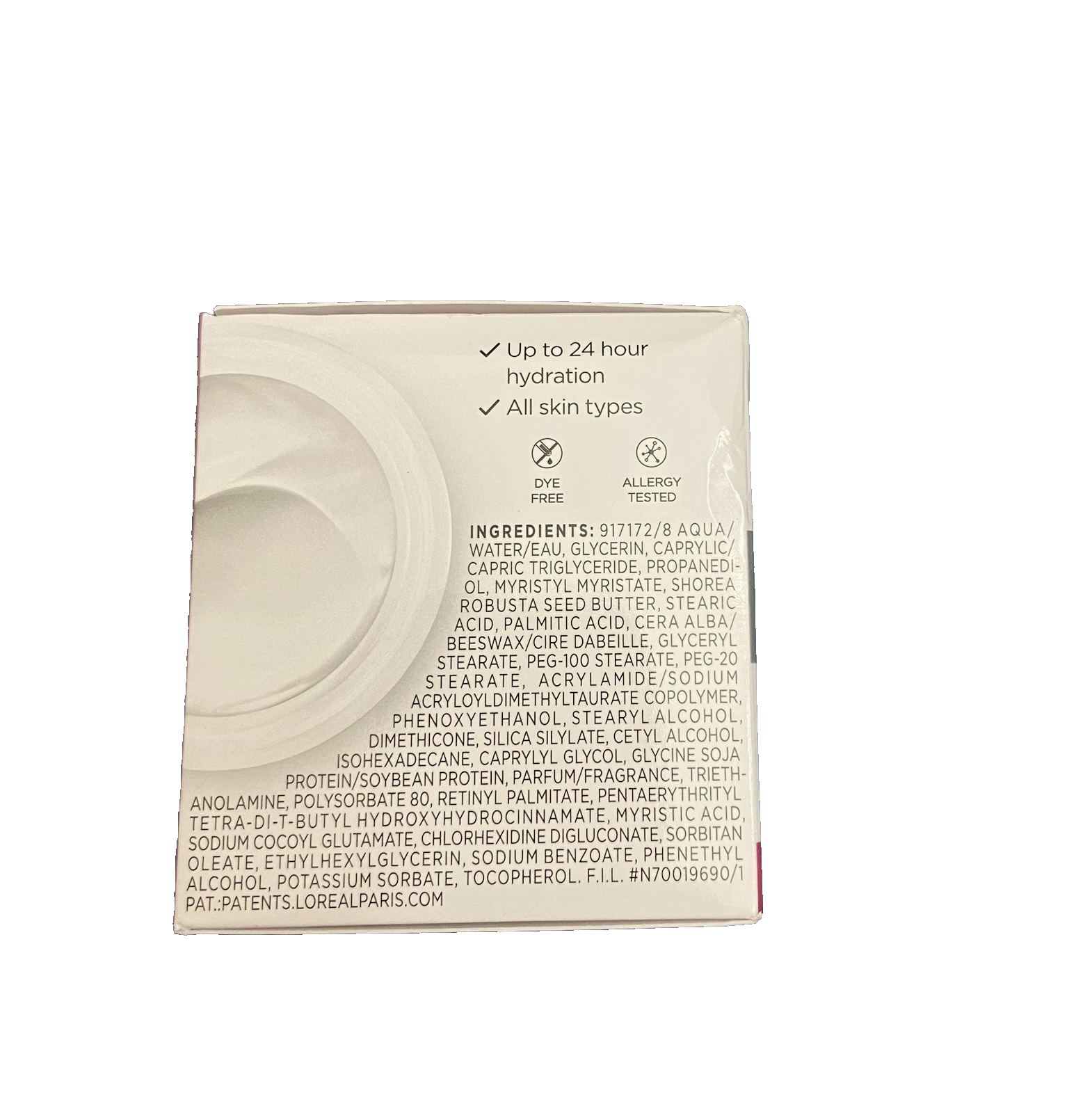 🧴 Product Description: L'Oréal Paris Wrinkle Expert 45+ Retino-Peptide Day/Night Moisturizer is an anti-aging cream formulated for individuals aged 45 and above. Enriched with Retino-Peptide, a combination of a peptide and a stable form of retinol, this moisturizer helps to visibly reduce wrinkles, restore skin firmness, and provide 24-hour hydration. Suitable for all skin types, including sensitive skin, it can be used both day and night to improve skin smoothness and elasticity. 🌿 Key Features: Anti-Aging Formula: W rinkles and loss of firmness. Retino-Peptide Complex: Combines retinol and peptides to enhance skin renewal. 24-Hour Hydration: Provides long-lasting moisture. Day & Night Use: Versatile application for morning and evening routines. Dermatologist Tested: Suitable for sensitive skin. 🌸 Fragrance: This moisturizer contains added fragrance (Parfum) for a pleasant scent. While many users appreciate the light fragrance, individuals with fragrance sensitivities should review the ingredient list before use. ⚠️ California Proposition 65 Warning: As of my current knowledge, there is no specific Proposition 65 warning associated with this product. However, it's important to note that product formulations and regulations can change. For the most accurate and up-to-date information, please refer to the product packaging or consult the manufacturer's official website. 🧪 Active Ingredients: Retinyl Palmitate: A derivative of Vitamin A (retinol) that helps to reduce the appearance of wrinkles and fine lines by promoting skin cell turnover. Acetyl Trifluoromethylphenyl Valylglycine: A peptide that contributes to skin firmness and elasticity. 🧪 Inactive Ingredients: Aqua/Water, Cyclohexasiloxane, Glycerin, Paraffinum Liquidum/Mineral Oil, Myristyl Myristate, Shorea Robusta Butter/Shorea Robusta Seed Butter, Stearic Acid, Palmitic Acid, PEG-100 Stearate, Cera Alba/Beeswax, Glyceryl Stearate, PEG-20 Stearate, Acrylamide/Sodium Acryloyldimethyltaurate Copolymer, Stearyl Alcohol, Cetyl Alcohol, Isohexadecane, Glycine Soja Protein/Soybean Protein, Fragrance, Methylparaben, Acrylonitrile/Methyl Methacrylate/Vinylidene Chloride Copolymer, Triethanolamine, Polysorbate 80, Ethylparaben, Myristic Acid, Caprylyl Glycol, Sodium Cocoyl Glutamate, Chlorhexidine Digluconate, Sorbitan Oleate, Ethylhexylglycerin, Sodium Benzoate, Isobutane, Phenethyl Alcohol, Potassium Sorbate, Myristyl Alcohol, Tocopherol, Pentaerythrityl Tetra-Di-T-Butyl Hydroxyhydrocinnamate.