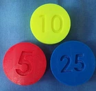 Each Lot contains the 6 coins shown here. These are custom made pieces that are compatible with Fisher Price Cash registers #926 (1975-1990), #2044 (1991-1994), #L6485 (2007-2011) and #2073 (2015 remake of #926) . They are not identical to the original versions, but they are similar. (#2044 originally had a red 25 piece and and an orange 5 piece, I have another 2 ads with those colors). I have the measurements of all the cash register coins so I altered these to fit all the models mentioned above, for example this yellow coin is the same thickness as the red coin (see photo #3). They are sturdy and they are made of ABS plastic like Lego Brand uses. My daughter uses these with her model L6485 FP cash register and they have held up well. The last photo shows the backside of the coins. These were printed off of a 3D printer. Note: I have had a few people ask me lately if I can offer fatter yellow 10 coins, because their machine has a fatter slot for the yellow one and they prefer that the yellow coin only fit in that one slot. I am now offering that option as long as you leave a note in your order or contact me before I send the coins requesting the 2 yellow coins to be the larger version- otherwise you will receive the thinner yellow coin that will fit the other slots by default. Thank you for your feedback. If you would like custom colors like red, orange, yellow green, blue, purple, white or black please contact me and let me know. The print time for this set is about 2 hours and 44 minutes, and depending on how many other orders are in line, custom orders might take just a bit longer to fill but no more than one week. (Altered from original design by owl1981, listed on thingiverse.com. Sold under the creative commons share alike license.) Feel free to ask questions. I do offer returns within 30 days if you are not satisfied. This item is from a smoke free/pet free home. If you have any concerns upon arrival, please contact me before leaving feedback so that I can take care of the problem first. Thank you for reading my ad and have a great day!