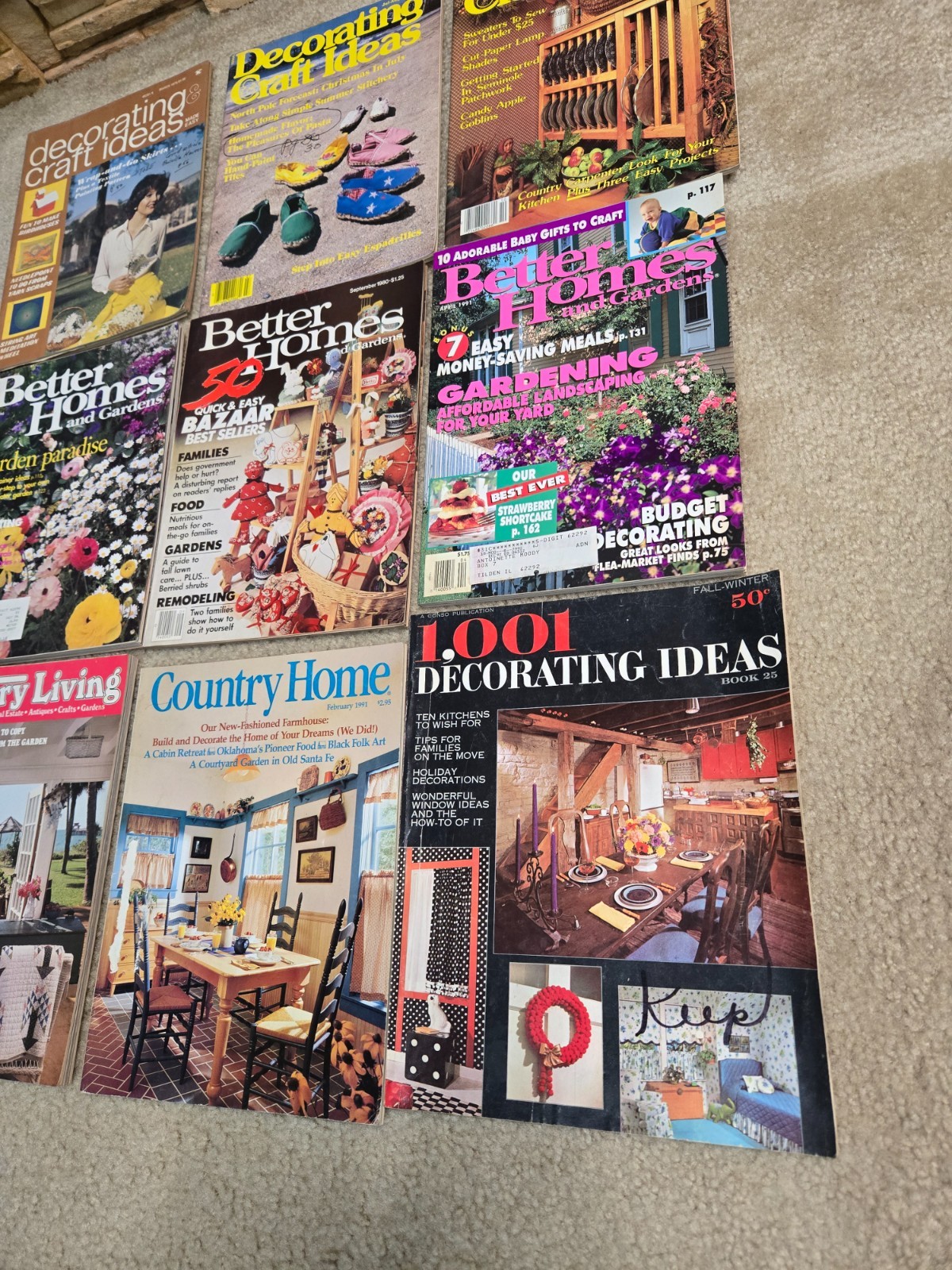 The product is a collection of nine vintage magazines from the 70s, 80s, and 90s focused on decorating and craft ideas, specifically from Better Homes and Country magazines. These magazines are filled with illustrated ideas for crafts, making them a valuable resource for those interested in DIY projects and vintage design inspiration. With a American origin and English language, these magazines offer a glimpse into the popular trends and styles of the past for decorating and crafting purposes. Some have writing on them. Otherwise, these are all in Very Good condition & complete. All of our items are shipped from a SMOKE-FREE environment.