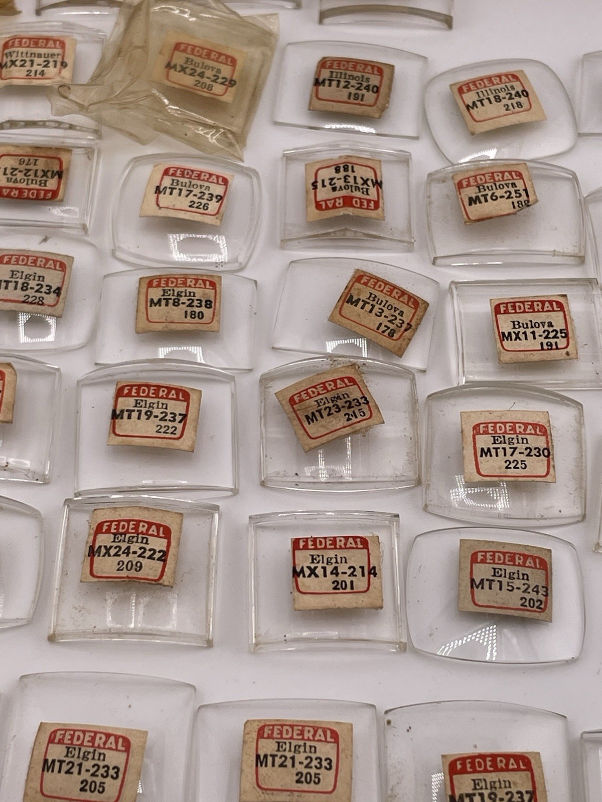 LOT OF 125 +- Elgin Mineral glass WATCH CRYSTALS Convex Tank X mX Nos #02