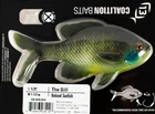 (LOT OF 3) 13 FISHING COALITION THE GILL 5.25" CB-GILL525-8 NTRL SUNFISH CP4204 (LOT OF 3) 13 FISHING COALITION THE GILL 5.25" CB-GILL525-8 NTRL SUNFISH CP4204 The 13 Fishing Coalition Bait Co. The Gill Swimbait is a 5.25 inch, 1.19 ounce bluegill profile soft body swimbait. With a super-realistic profile molded after a real bluegill, the 13 Fishing Coalition Bait Co. The Gill features an anatomically correct body shape with 3D fins, scales, and face details that will easily fool fish into thinking its the real thing. It is also outfitted with a large paddle tail that produces an alluring tail kicking action to mimic lifelike swimming action. Its built-in hook slot and reinforced nose section are perfect for big swimbait hooks with screw-lock keepers (the Owner Beast is an especially good choice) and allows The Gill to be effectively fish through weeds and grass beds where bluegills are often ambushed by lunker bass. Features: Anatomically correct body shape with 3D fins, scales, and face details. Excellent for fishing around cover-heavy bass beds during the spring spawn. Built-in hook slot and reinforced nose section are perfect for big swimbait hooks with screw-lock keepers. Specs: Length: 5.25" Weight: 1-1/2oz Color: Natural Sunfish PAYMENT TERMS VISA, MASTERCARD, AMEX, OR DISCOVER PAYPAL APPLE PAY GOOGLE PAY PAYMENTS MUST BE MADE IN FULL WITHIN 7 DAYS SHIPPING TERMS ALL PAID ORDERS SHIP WITHIN 1 BUSINESS DAY INSURANCE IS INCLUDED IN SHIPPING PRICE COMBINED ORDER POLICY ORDERS ARE COMBINED NIGHTLY AFTER END OF ALL AUCTIONS. DO NOT PAY FOR INDIVIDUAL ITEMS ENDING ON THE SAME DATE IF YOU WANT THE ORDER COMBINED. ALLOW US TIME TO SEND YOU A COMBINED INVOICE. ORDERS THAT ARE PAID FOR ON DIFFERENT DATES ARE NOT OUR RESPONSIBILITY TO COMBINE. ITEMS MUST BE PAID IN FULL WITHIN 7 DAYS FROM THE END OF 1ST AUCTION. COMBINED ORDER PRICING BAITS - EACH ADDITIONAL AUCTION $1.00 REELS - EACH ADDITIONAL AUCTION $1.00 RODS* - EACH ADDITIONAL AUCTION $1.00 *ALL RODS WILL ONLY COMBINE WITH RODS OPERATING HOURS BUSINESS HOURS ARE MONDAY - THURSDAY 9AM-5PM CENTRAL TIME & FRIDAY 9AM-3PM CENTRAL TIME, EXCLUDING HOLIDAYS EBAY MESSAGES ARE ANSWERED DURING NORMAL BUSINESS HOURS DUE TO THE OVERWHELMING AMOUNT OF ONLINE ORDERS WE ARE EXPERIENCING, LONGER THAN NORMAL RESPONSE TIME TO EMAILS MAY OCCUR. PLEASE BE PATIENT.