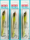 (LOT OF 3) REBEL JUMPIN MINNOW 1/2OZ T20572 CHARTREUSE AYU D7308 (LOT OF 3) REBEL JUMPIN MINNOW 1/2OZ T20572 CHARTREUSE AYU D7308 Nothing triggers bass and inshore predator fish like the subtle walk-the-dog action of a Rebel Jumpin’ Minnow. This slender minnow-shaped topwater bait sashays back-and-forth on the surface to create a hypnotizing action like that of a fleeing baitfish. Internal weighting allows for long casts with this slender bait, making it perfect for schooling fish and anytime fish are feeding on top. Length: 4-1/2" Weight: 1/2oz Hook: #2 Treble Depth: Topwater PAYMENT TERMS VISA, MASTERCARD, AMEX, OR DISCOVER PAYPAL APPLE PAY GOOGLE PAY PAYMENTS MUST BE MADE IN FULL WITHIN 7 DAYS SHIPPING TERMS ALL PAID ORDERS SHIP WITHIN 1 BUSINESS DAY INSURANCE IS INCLUDED IN SHIPPING PRICE COMBINED ORDER POLICY ORDERS ARE COMBINED NIGHTLY AFTER END OF ALL AUCTIONS. DO NOT PAY FOR INDIVIDUAL ITEMS ENDING ON THE SAME DATE IF YOU WANT THE ORDER COMBINED. ALLOW US TIME TO SEND YOU A COMBINED INVOICE. ORDERS THAT ARE PAID FOR ON DIFFERENT DATES ARE NOT OUR RESPONSIBILITY TO COMBINE. ITEMS MUST BE PAID IN FULL WITHIN 7 DAYS FROM THE END OF 1ST AUCTION. COMBINED ORDER PRICING BAITS - EACH ADDITIONAL AUCTION $1.00 REELS - EACH ADDITIONAL AUCTION $1.00 RODS* - EACH ADDITIONAL AUCTION $1.00 *ALL RODS WILL ONLY COMBINE WITH RODS OPERATING HOURS BUSINESS HOURS ARE MONDAY - THURSDAY 9AM-5PM CENTRAL TIME & FRIDAY 9AM-3PM CENTRAL TIME, EXCLUDING HOLIDAYS EBAY MESSAGES ARE ANSWERED DURING NORMAL BUSINESS HOURS DUE TO THE OVERWHELMING AMOUNT OF ONLINE ORDERS WE ARE EXPERIENCING, LONGER THAN NORMAL RESPONSE TIME TO EMAILS MAY OCCUR. PLEASE BE PATIENT.