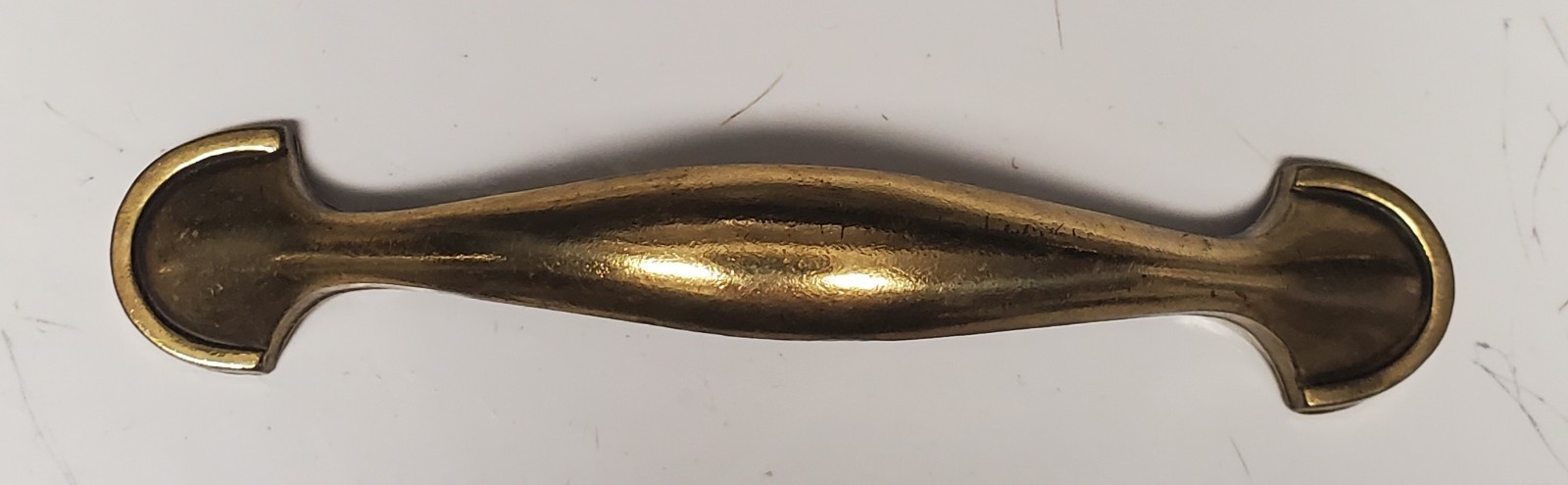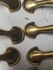This listing is for a large lot of 30 vintage cabinet or drawer pull handles manufactured by the Keeler Brass Company (KBC). These are a classic arch/spoon foot style, marked with "KRC" and the model number "N16774" on the back. Key Features: Quantity: 30 pull handles Brand: Keeler Brass Company (KRC) Model Number: N16774 Material: Likely die-cast zinc with a brass finish, common for hardware from the 1970s-1980s. Finish: Original antique or light brass finish. Condition: Used, vintage condition. As shown in photos, the finish displays a natural patina, minor scratches, and some wear consistent with age and previous use. Some require cleaning to restore the original luster. Measurements: Center-to-Center (screw hole spacing): Approx. 3 inches (76mm) Overall Length: Approx. 4.75 - 5 inches (verify exact length) This large lot is ideal for anyone restoring a kitchen, a large set of furniture, or for use as hard-to-find replacements.