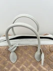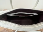 The LOUIS VUITTON Bouclettes Speedy 25 Monogram Top Handle Bag is a limited edition satchel/top handle bag with a rectangular shape and white exterior. It features silver hardware, a zip closure, and double white leather handles with a 3-inch drop. This stylish bag is perfect for casual occasions and includes inner pockets, an adjustable strap, a key, a clochette, and a lock for added convenience. Made in France with leather materials and a burgundy fabric lining, this Louis Vuitton Speedy 25 bag is a luxurious and timeless accessory for any woman's wardrobe.