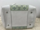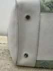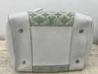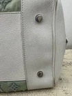 The Louis Vuitton Bouclettes Speedy 25 Monogram Top Handle Bag is a limited edition luxury handbag designed for women. This medium-sized bag features a classic monogram pattern with a green exterior made of enamel and leather. The white handle color, silver hardware, and leather lining add a touch of elegance to the design. The bag includes a lock accessory and is perfect for everyday use with a shoulder strap for added convenience. Made in France, this Louis Vuitton handbag embodies sophistication and style in every detail.